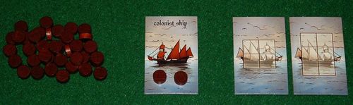 Changed number of ships, colonists, or VPs: Other people have proposed `patches' which experiment with the Alea variant by altering the number of ships, colonists, or victory points. Probably the most significant change is to increase the number of ships available from 2 to 3, which makes it easier to ship and decreases the likelihood of needing warehouses - I'm not persuaded this is an improvement. With less players in the game, there are usually less types of goods being produced, so I personally find that the tightness that results from only having 2 ships mirrors the tightness and competition for shipping that is present in a multi-player game. An under-used Trading House tends to be a weakness of the two-player variant as it is, so adding more ships only makes this problem worse. Until now I've also not seen compelling reasons for adjusting the number of colonists or VPs of the official Alea variant.