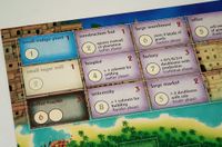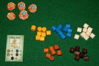 ● Room for expansion. The two-player game is more likely to become scripted than the multi-player game. Replayability of the two-player experience can be enhanced by making a random draw of 12 of the 24 building tiles, and even more by making a random draw of tiles that includes the expansion buildings.
