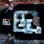 Your skirmishes may take you into the snowy wastes of the Nelvaanian War Zone Skirmish Map. Here, much of the battlefield is covered in snow and trenches, and you’ll need to fight hard if you’re going to recover broken Droids or stay near a constantly moving string of patrol Droids. As you venture into the cold, you can draw inspiration from the iconic artwork that borders this Skirmish Map, featuring Darth Vader and Diala Passil.