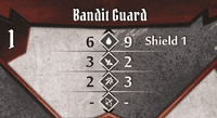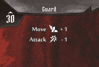 For instance, with this card, a normal bandit guard (move 3, attack 2) would first move up to 4 (3+1) and then perform an attack 1 (2-1) if able. Before he does any of that, though, your enemy, who has a (small) mind of his own, is going to focus on a target - either you or one of his companions.